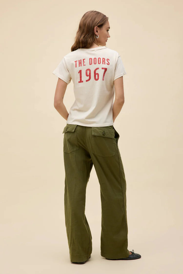 Turn up the volume - The Doors' anthem of the '60s psychedelia and counterculture movements, Light My Fire, is highlighted in distressed text on this double-sided Reverse Girlfriend Tee.