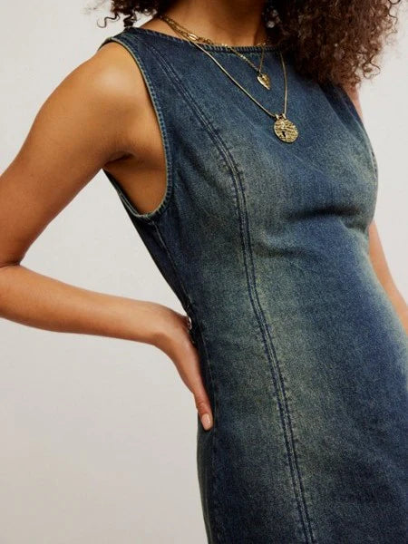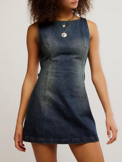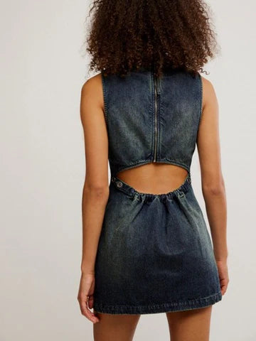 FREE PEOPLE Atlas Denim Mini Dress in vintage indigo.