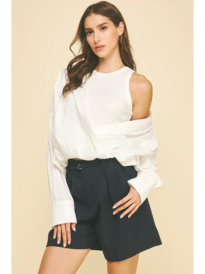 2 in One Tank Top & Shirt. Basic Collar- Long-sleeved.