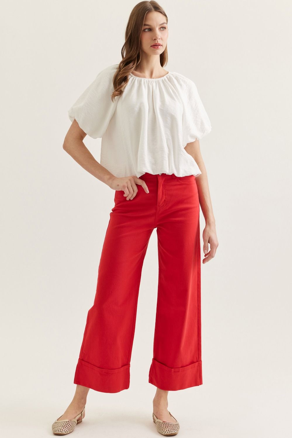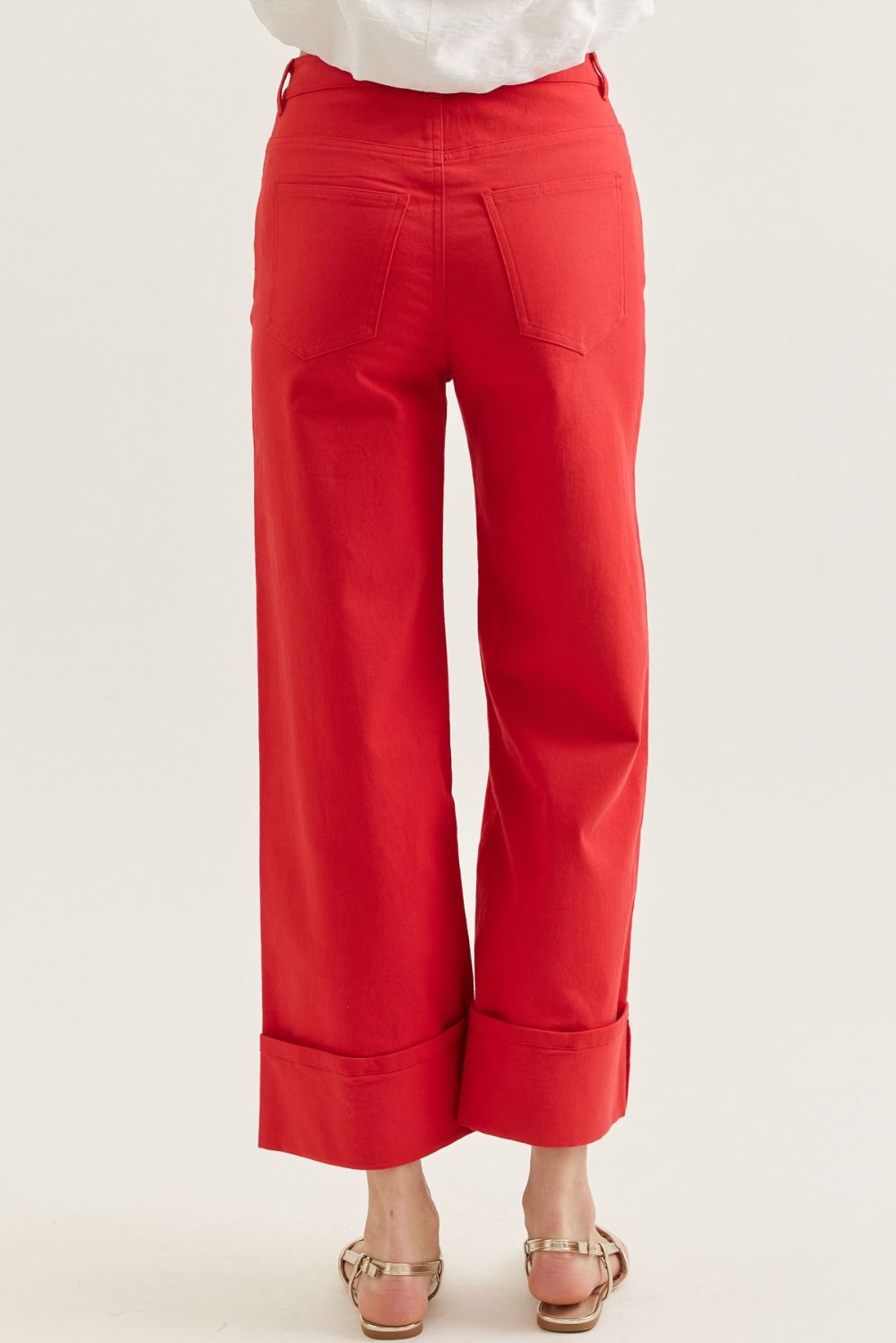 Elevate your everyday wardrobe with these versatile solid mid-rise ankle pants. Crafted from a breathable cotton-spandex blend, they offer the perfect balance of comfort and durability. The classic zip-fly button closure and functional jean pockets provide practical style, while the lightweight, unlined construction keeps you cool throughout the day. Available in rich red or green, these woven pants transition seamlessly from casual outings to relaxed office settings. The non-sheer fabric ensures confidence with every wear.
