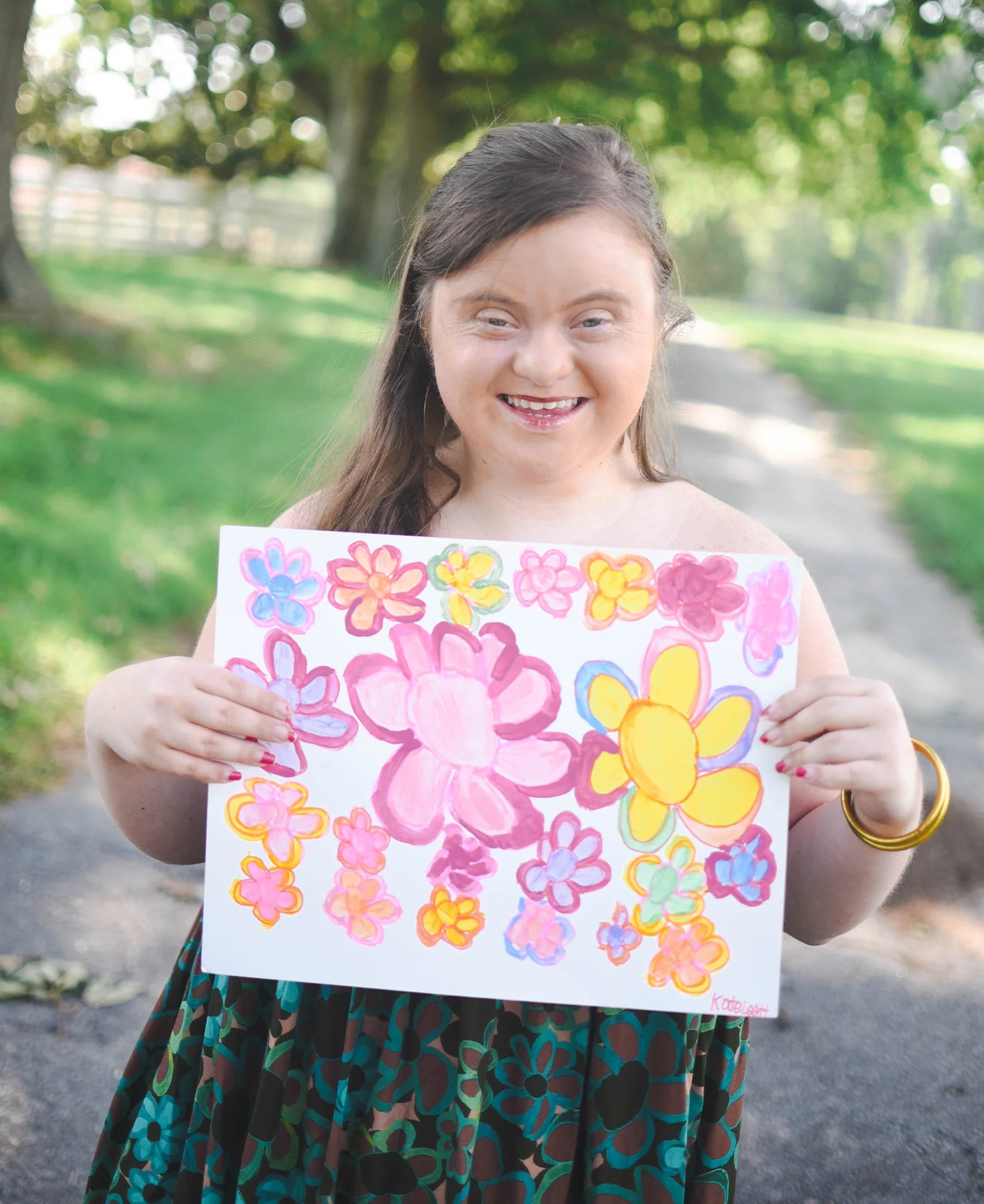 Kate is a talented 24 year old who loves all things creative! She has worked as an instructional assistant at Therapy Place in Columbia, SC for the past 3 years, and is also a barista at Bitty & Beau's Coffee. Kate has been a proud camper at Camp Cole for the past 7 years—her favorite part of camp is art, which is where she painted the bold vibrant florals of our Fall collection. Kate's life goal is to be a fashion designer, and we're honored to have her design for us!