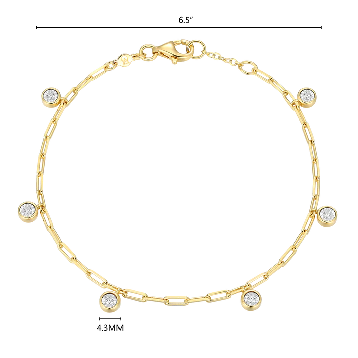 Prin's Dangle Station Lab-Created Diamond Mini Paperclip Bracelet in 14K Yellow Gold-Plated Sterling Silver
