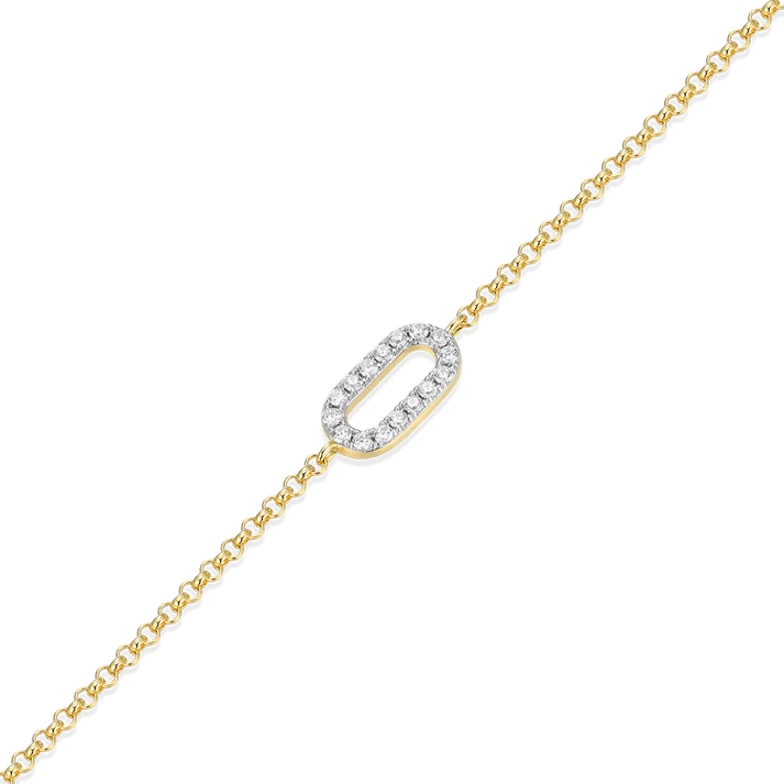 Refresh your wrist stack with this sleek bolo bracelet, crafted in radiant 14K yellow gold-plated sterling silver. A delicate, modern paperclip charm sparkles with 16 lab-created diamonds, adding subtle glamour to your everyday style. An adjustable rolo chain secured by a lobster clasp comfortably fits any wrist up to 11 inches. Perfect alone or layered, it's a versatile essential you'll adore.