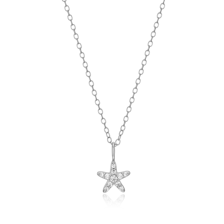 This starfish pendant shimmers with brilliant diamonds and hangs delicately on a cable chain. Channel the carefree spirit of sun-kissed days and ocean breezes wherever you go.