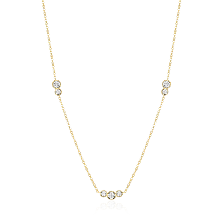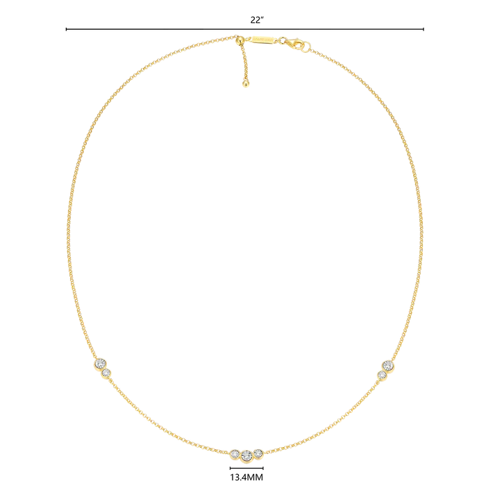 Get ready to sparkle a little brighter with this stunning station necklace. Showcasing seven shimmering lab-created diamonds stationed elegantly along a sophisticated rolo chain, this piece is crafted from luxurious 14K yellow gold-plated sterling silver. Easily adjustable with a bolo slider, this necklace is your go-to accessory for instant glamour
