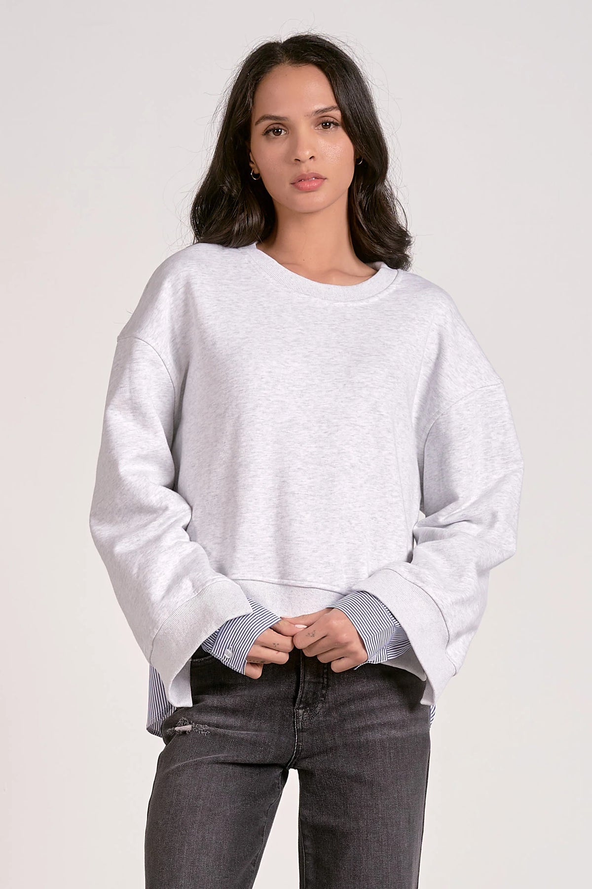 Elan Mixed Media Long Sleeve Top