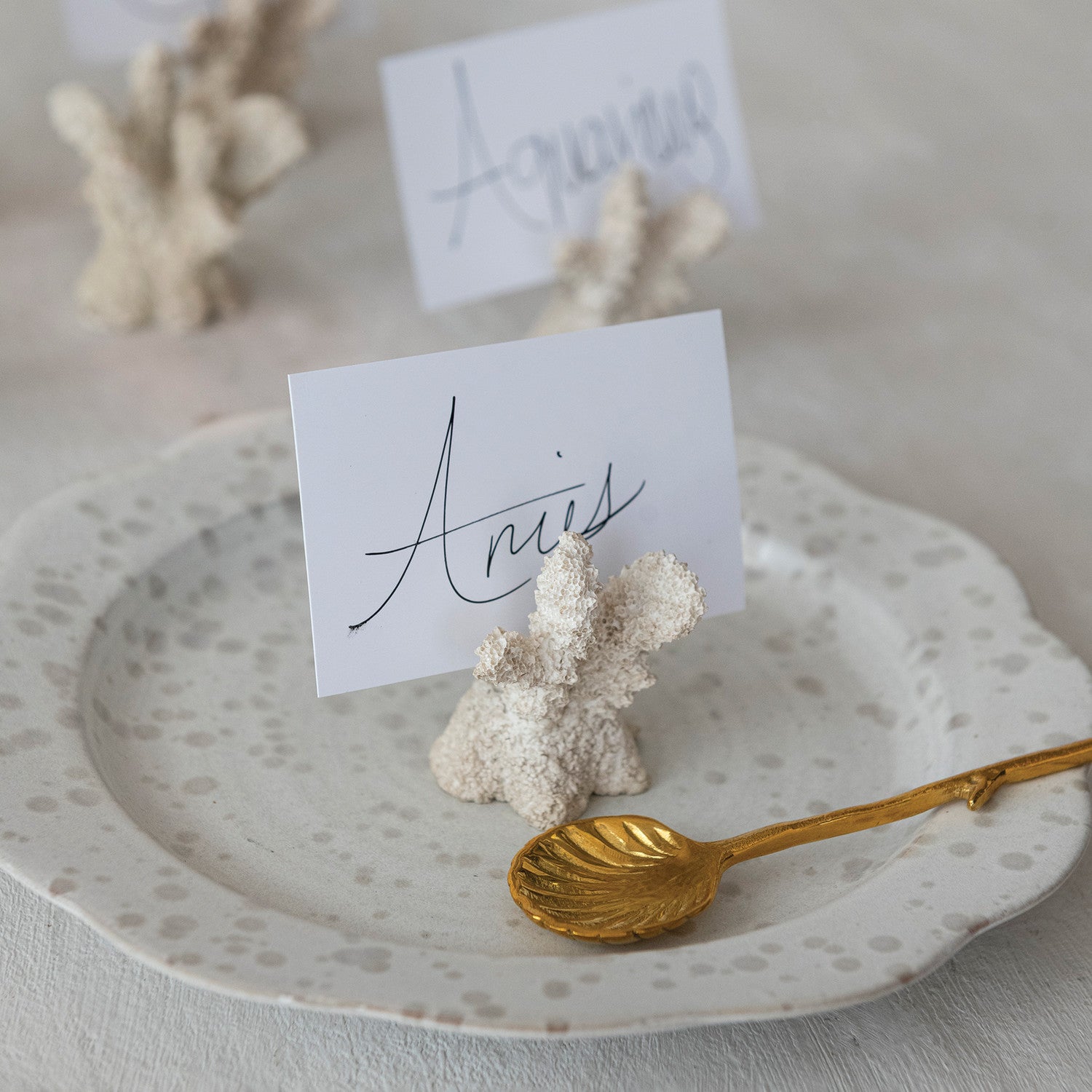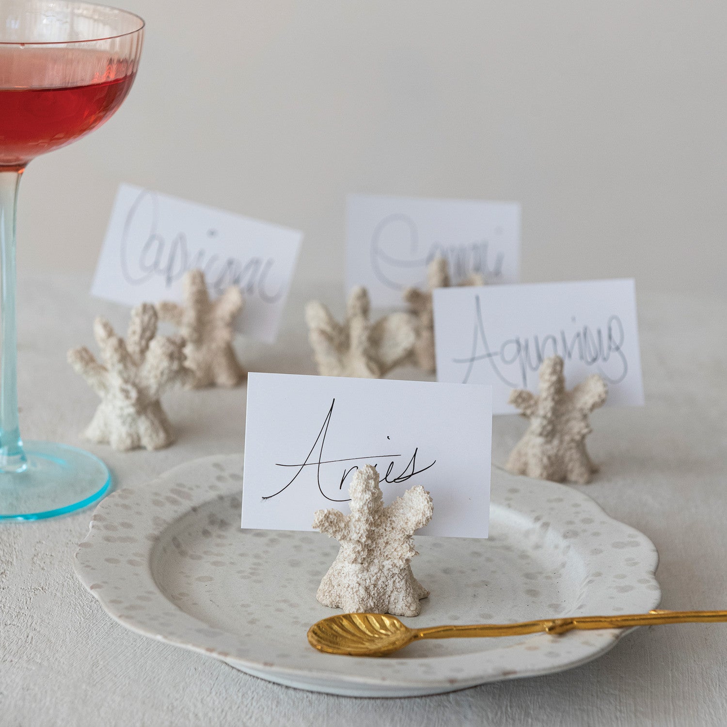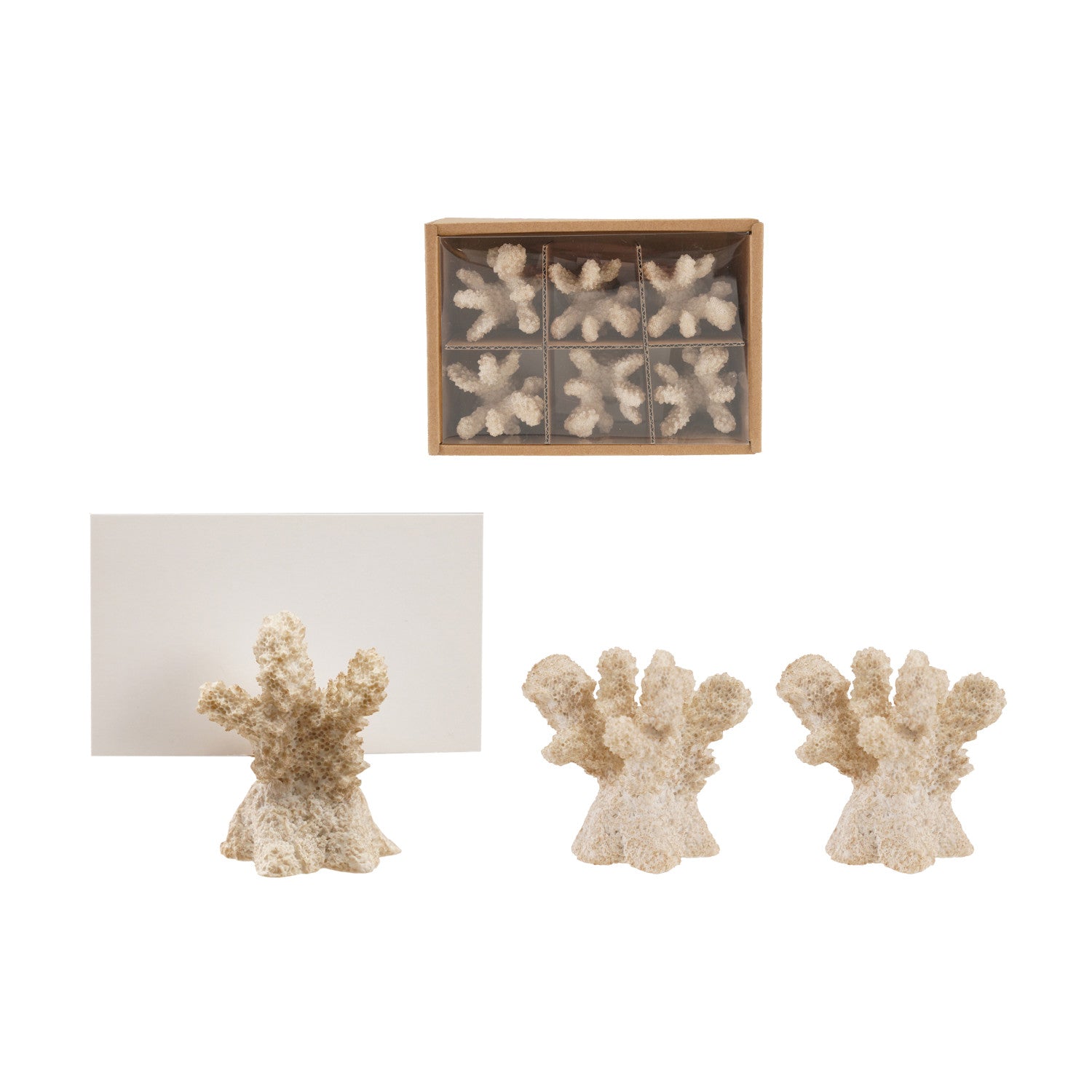 Resin Coral Shaped Place Card/Photo Holders with 12 Paper Cards, Boxed Set of 6